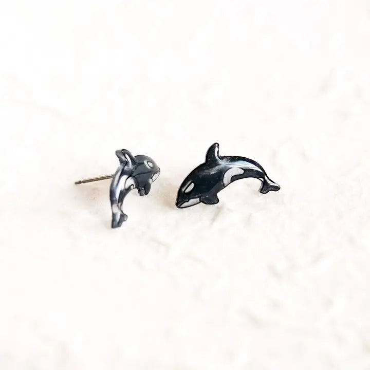 These earrings are coated in glossy resin and measure about 1 cm wide. Made with hypoallergenic nickel-free titanium earring posts and anodized aluminum barrel backs. Everything is handmade and hand drawn, so expect the subtle differences of hand-drawing. These earrings are water resistant, but please care for them by removing before showering or swimming.
