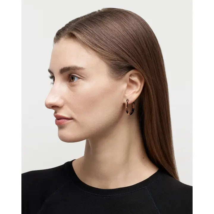 Delicate, lightweight hoop earrings handcrafted from fine Italian acetate with stainless steel posts and barrel backings.