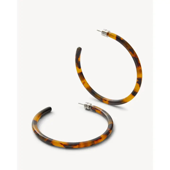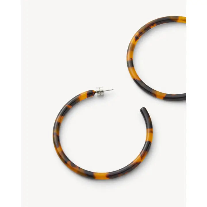 Oversized hoop earrings made from lightweight Italian acetate with engraved barrel backings.