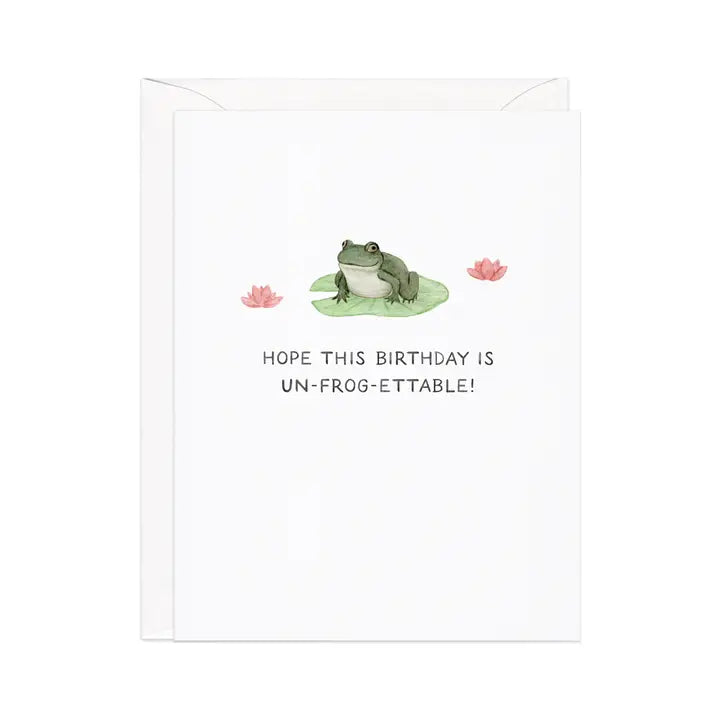 This birthday card features a cute froggy pun, paired with an illustrated frog and lily pad scene. Great for: animal lovers, milestone birthdays, summer birthdays