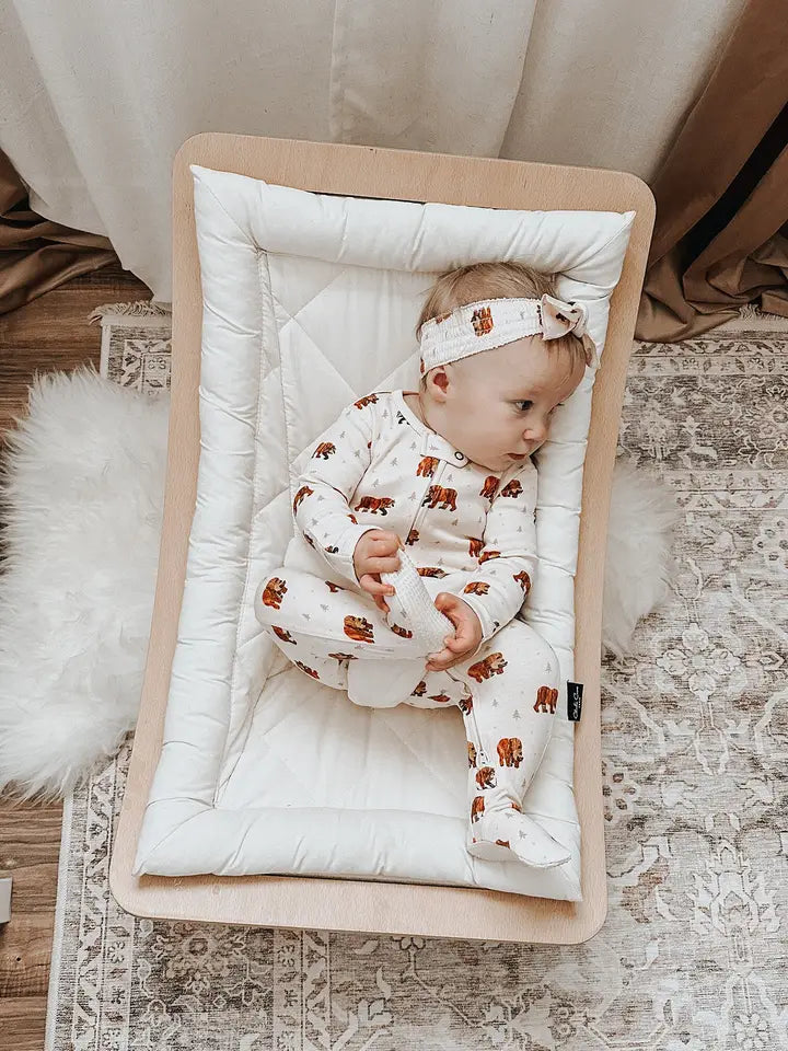 2-way zipper opens from neck to ankle for easy dressing...and also from ankle to neck for easy diaper changing, includes a tiny zipper "pocket" at ankle for extra safety, and fold-over, mitt-sleeves (in sizes preemie/nb to 6/9m) for added warmth and protection from self-scratching.